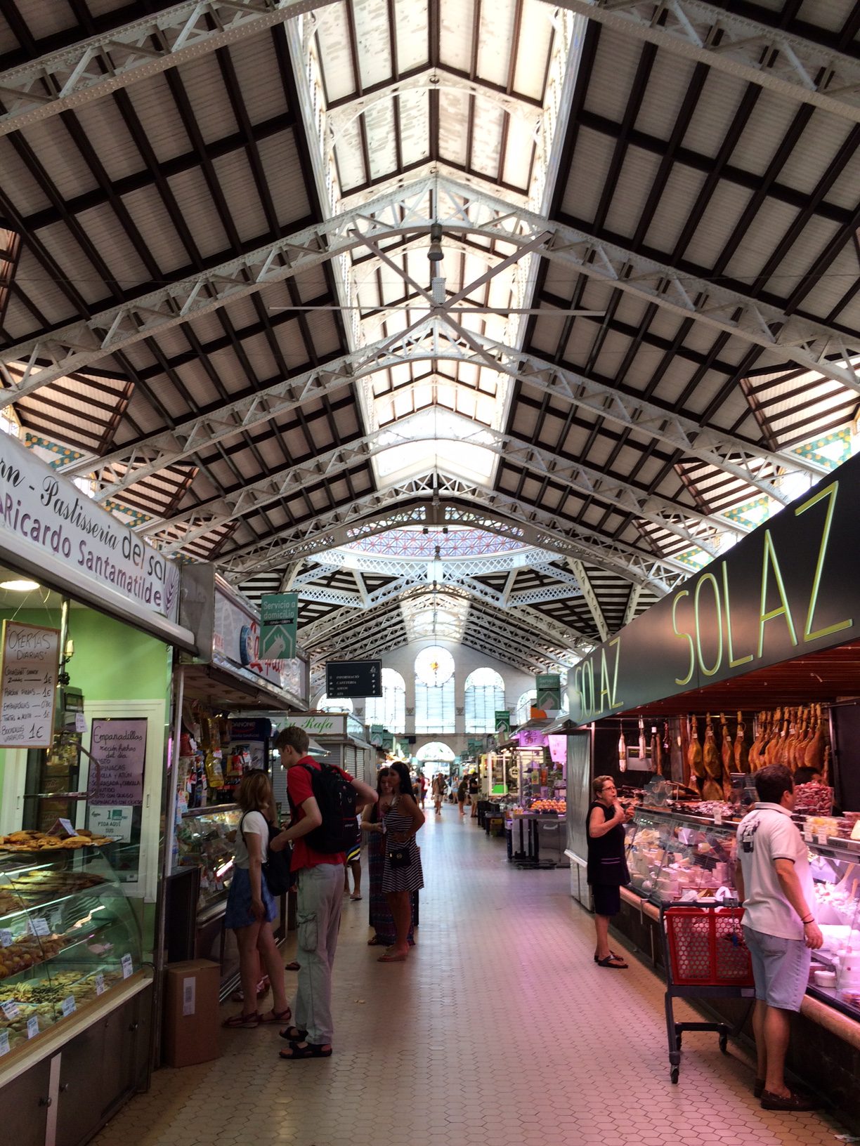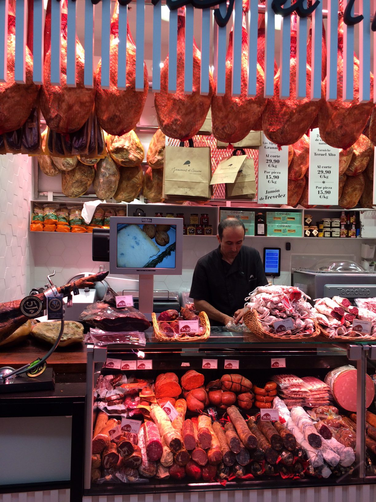 瓦倫西亞的中央菜市場Mercado Central ,馬德里的熟食市集Mercado de San Miguel果然都滿足了我的期待;它們皆是一處高頂的鍛鐵空間,聚集幾百家各種食品舖,認真走完一圈,就會對西班牙的農業與飲食文化有些概括認識,也能捕捉當地人的生活面貌;五感盡開,從看、聞、吃、喝、與老闆們對話裡,上到好多堂西班牙美食課。這些市場都不是摩登都會生活的產物,早在1910-1920年代就誕生了這樣的食物市集,一直至近十年,西班牙政府將市場當作觀光景點之一,提升了市場的硬體環境,也等於宣傳了國家與城市魅力。